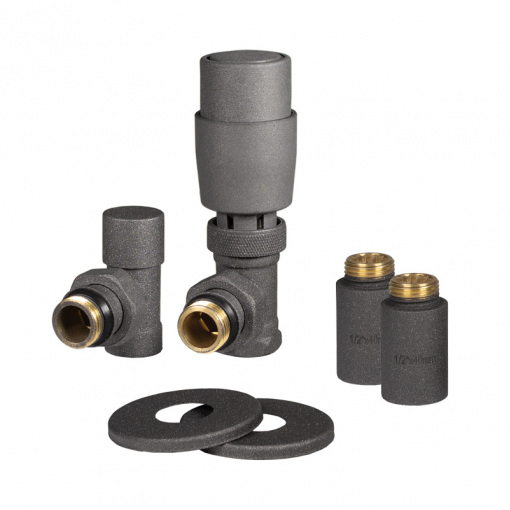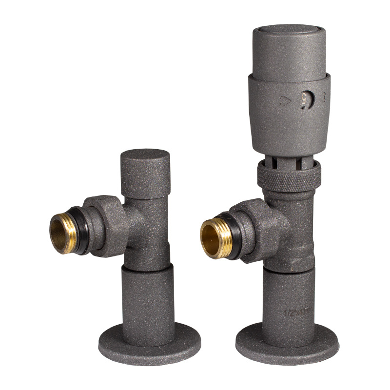 Дизайн краны радиаторные Ideale с термоголовкой 1/2” x 1/2” ВЗ графит угловые