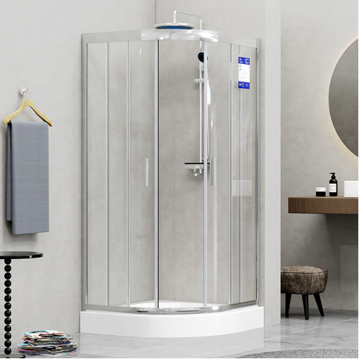 Эта полукруглая душевая кабина с поддоном оснащена элегантными ручками, двойными хромированными роликами сверху и снизу с системой легкого снятия. Кроме того, сплошные настенные профили обеспечивают надежность и облегчают очистку. Дверца душевой кабины изготовлена из прочного закаленного стекла толщиной 6 мм. Поддон изготовлен из высококачественного акрила, армированного стекловолокном и укрепленного полиэфирными смолами. Он оборудован металлическим каркасом с ребрами жесткости, что повышает общую прочность. Также поддон имеет регулируемые ножки, упрощающие процесс установки и настройки правильного угла наклона.