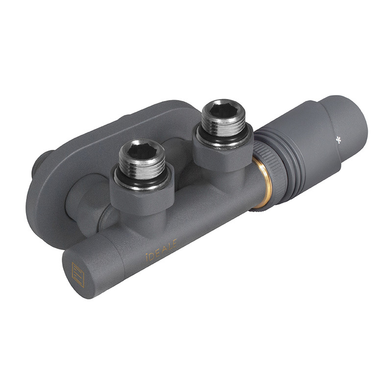 Характеристика комплекта дизайн кранов Ideale Duo с термоголовкой 1/2” x 1/2” антрацит: