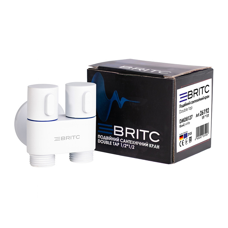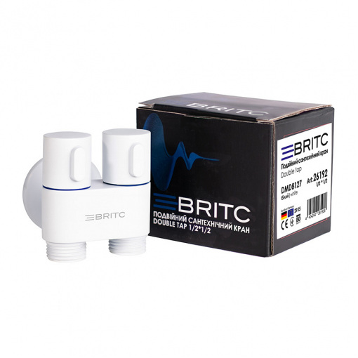 Кран двойной угловой сантехнический приборный Britc DMD 1/2”х1/2”, белый – это современный элемент запорной арматуры, который используется для подключения сразу двух сантехнических приборов к одной точке водоснабжения. Благодаря продуманной угловой конструкции, он позволяет экономить пространство и обеспечивает удобство в монтаже даже в местах с ограниченным доступом.