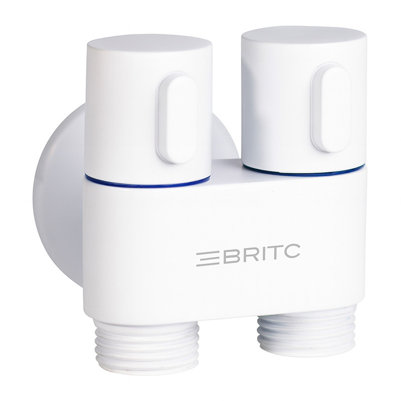 Кран двойной угловой сантехнический приборный Britc DMD 1/2”х1/2”, белый