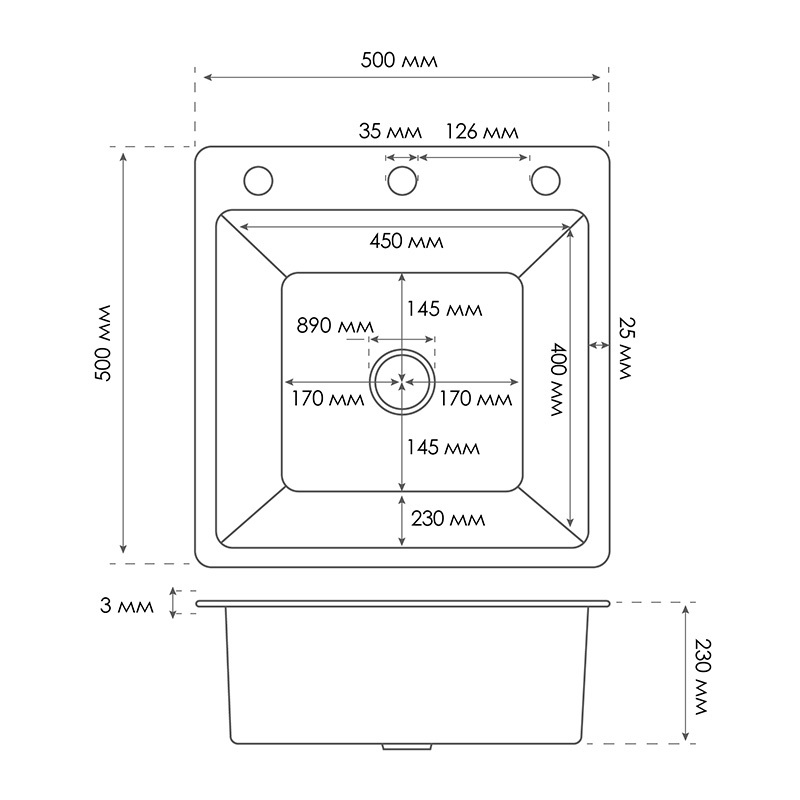 Глубокая основная чаша обеспечивает комфортную мойку посуды, без разбрызгивания воды. А компактные размеры и квадратная форма мойки позволяет эффективно использовать пространство даже на небольшой кухне.