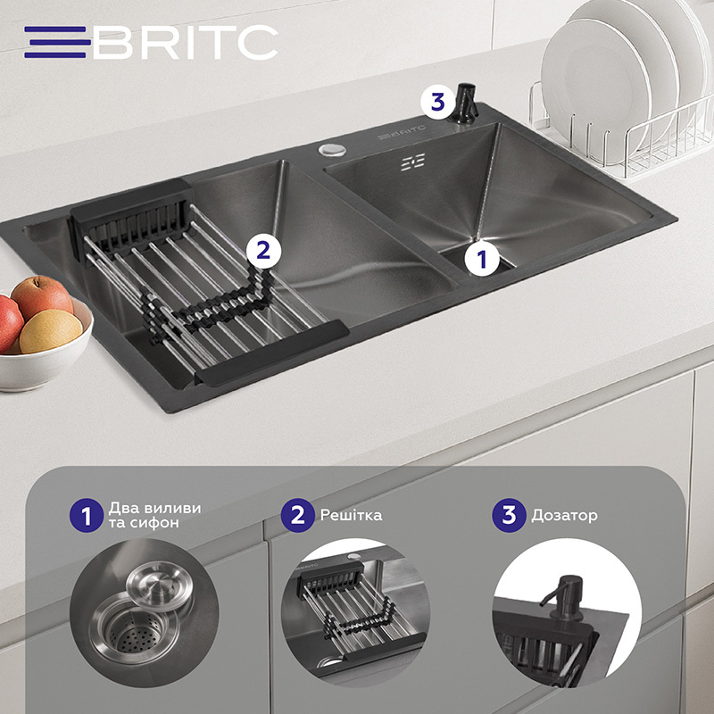 Кухонная мойка из нержавеющей стали Britc – это идеальное решение для современной кухни, где ценится качество, функциональность и практичность, ведь она сочетает долговечность материала, удобство в уходе и эстетичный внешний вид, гармонично вписываясь в любой интерьер.