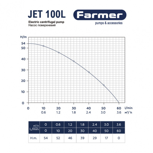 Серия насосов Farmer Jet состоит из самовсасывающих электронасосов центробежного типа. Самовсасывание обеспечивается благодаря эжектору, встроенному в корпус насоса. Лишь часть перекачиваемой рабочим колесом жидкости направляется к выходному патрубку, тогда как другая часть циркулирует через эжектор. Это создает разрежение в камере всасывания, что необходимо для процесса самовсасывания. Перед первым запуском насос нужно наполнить водой. Заполнять всасывающий трубопровод или удалять воздух из него не нужно. При запуске вода в корпусе насоса, проходя через эжектор, вытесняет воздух из камеры всасывания в камеру нагнетания и затем через выходной трубопровод. Это создает вакуум, поднимающий уровень воды во всасывающем трубопроводе, обеспечивая процесс самовсасывания.
