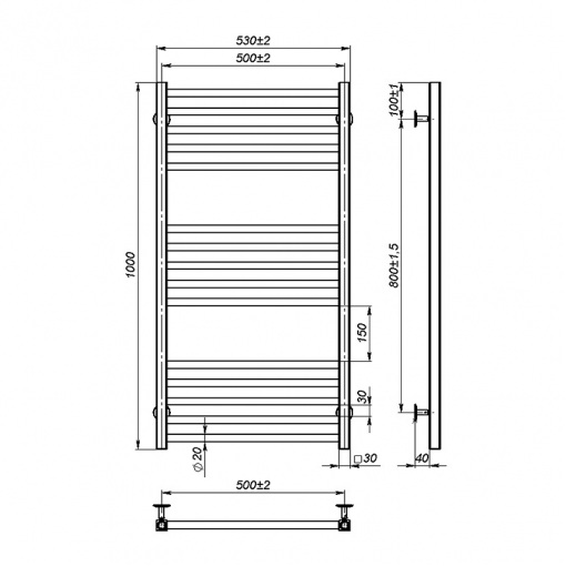 Основные характеристики полотенцесушителя OnlyHeat Ember 500/1000/15: