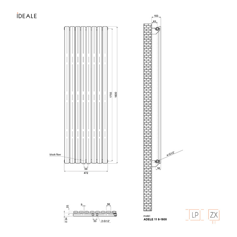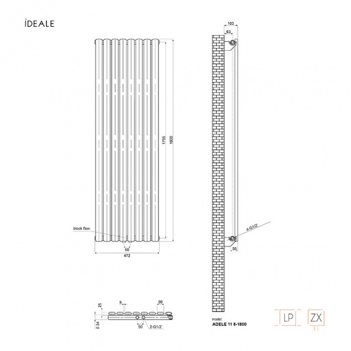 Радиатор дизайн Ideale Adele 11 8/1800 антрацит