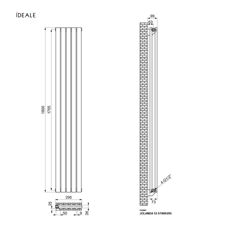 Радиатор дизайн Ideale Jolanda 12 5/1800/295 черный