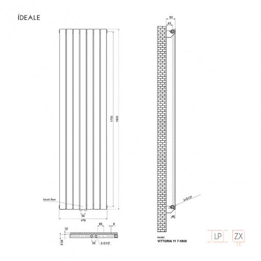 Радиатор дизайн Ideale Vittoria 11 7/1800/476 белый