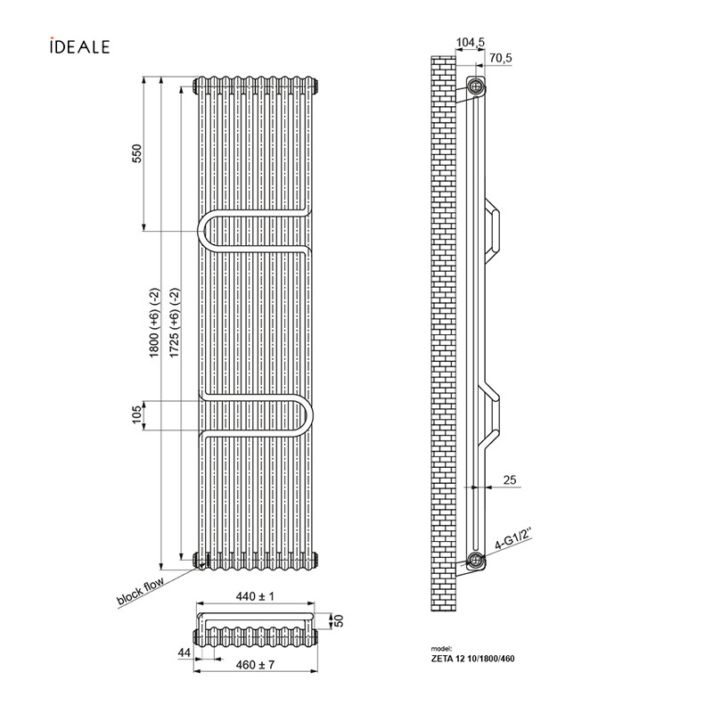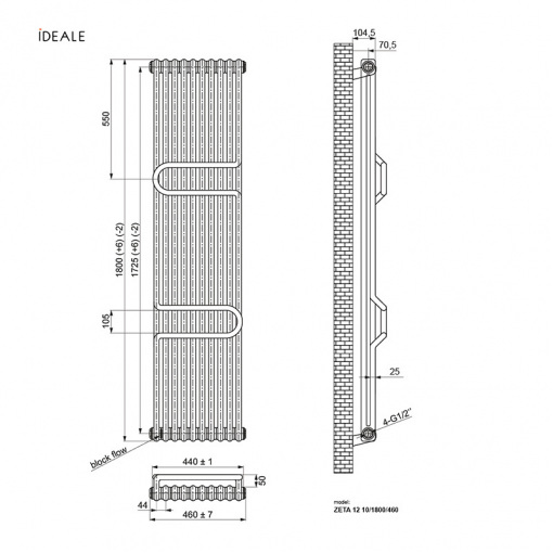Радиатор дизайнерский Ideale Zeta 12 10/1800/460 антрацит