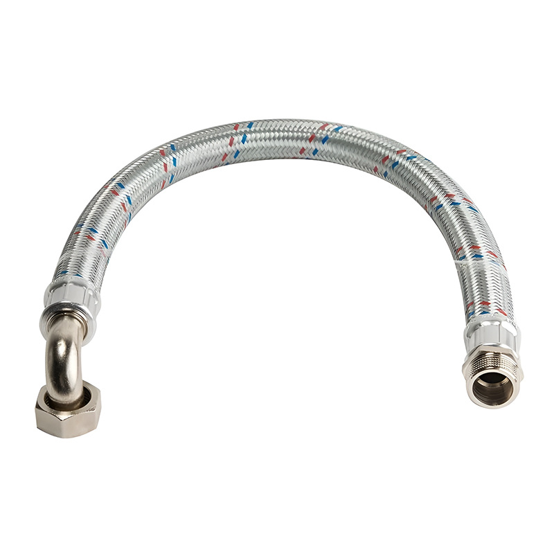 Наружная армированная оплетка из нержавеющей стали придает шлангу прочности, защищает от механических повреждений и позволяет выдерживать перепады давления, сохраняя целостность соединения даже при длительной нагрузке. Качественная оплетка из 7-ми нитей позволяет подводке выдерживать максимальное давление 10 атм.