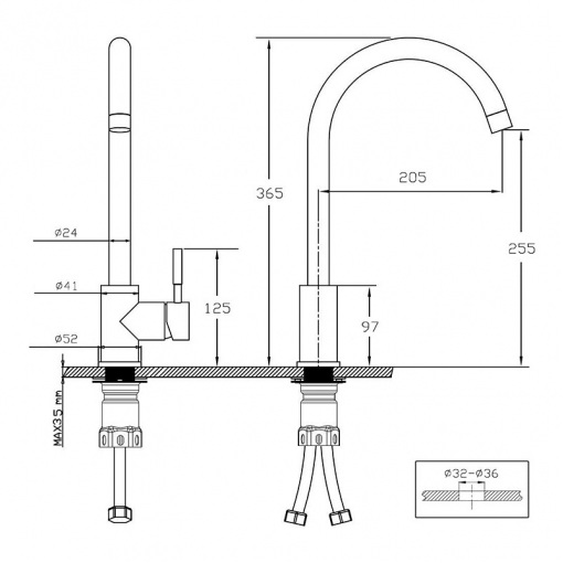 - Тип излива: поворотный