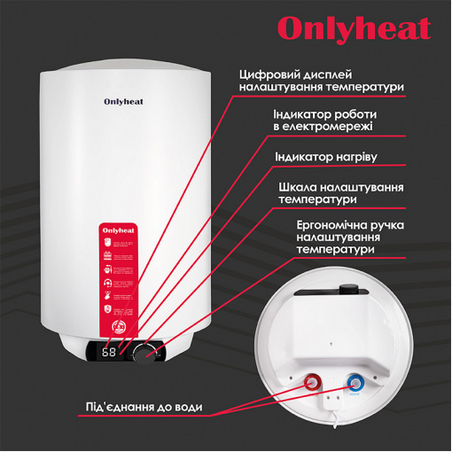 - Сучасний дизайн. Бойлери Onlyheat мають стильний і сучасний дизайн, який легко вписується в будь-який інтер'єр і робить їх елегантним акцентом в вашому приміщенні.