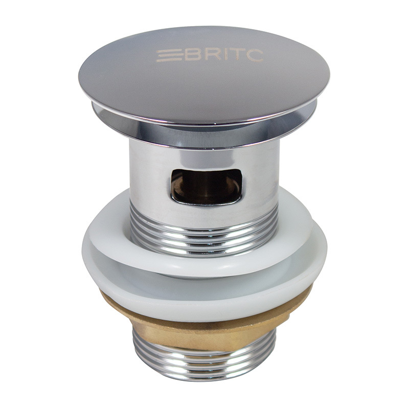 Донний клапан з переливом Britc SS65of призначений для умивальників, що мають переливний отвір для регулювання відтоку води з умивальника та запобігання його переповненню. Клапан має додатковий отвір, через який вода може вільно витікати у разі, якщо рівень води в раковині досягне критичної позначки, що перешкоджає її виливу. Це важлива частина сантехніки, яка забезпечує безпеку запобігаючи затопленню.