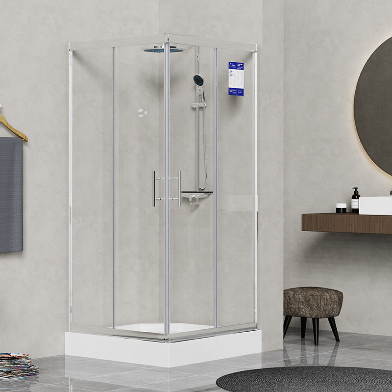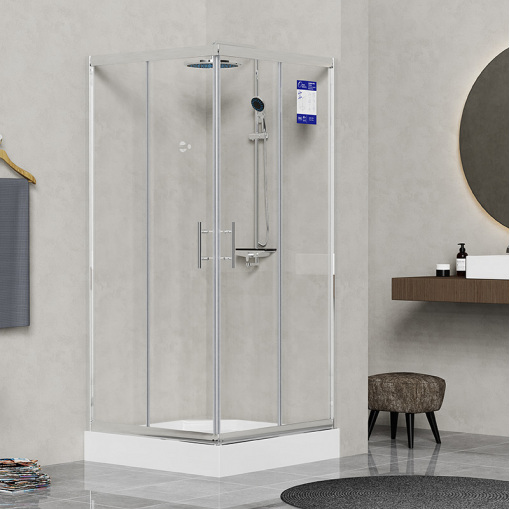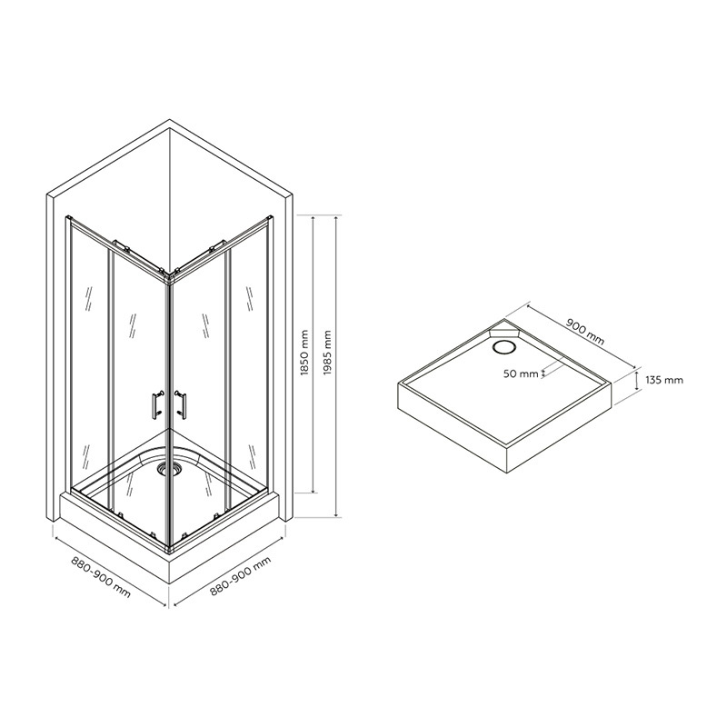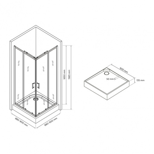 Ця квадратна душова кабіна з піддоном оснащена елегантними ручками, подвійними хромованими роликами зверху та знизу, які мають систему легкого зняття. Крім того, суцільні настінні профілі забезпечують надійність і полегшують очищення. Дверцята душової кабіни виготовлені з міцного загартованого скла товщиною 4 мм. Піддон виготовлений з високоякісного акрилу, армованого скловолокном і укріпленого поліефірними смолами. Він оснащений металевим каркасом із ребрами жорсткості, що підвищує загальну міцність. Також піддон має регульовані ніжки, які спрощують процес встановлення та налаштування правильного кута нахилу.