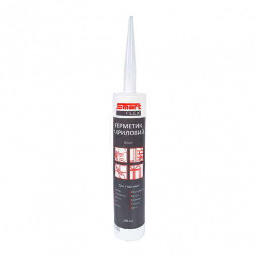 Герметик акриловий SmartFlex, білий використовується для з'єднання: дерева, гіпсокартону, металу, ДСП, бетону, фіброцементу, фанери, кераміки, каменю, цегли.
