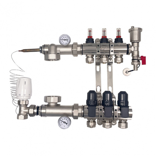 Завдяки колекторній групі можна підключити декілька теплових контурів до одного джерела теплопостачання.