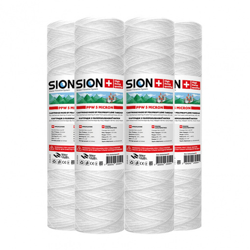 Картриджі з поліпропіленової нитки Sion виготовлені з поліпропіленової нитки європейського виробництва, яка намотується на поліпропіленовий сердечник. Чим щільніше намотана нитка – тим зменшується прохідність води та ретельніше вода очищається (прохідність зазначається в мікрометрах).