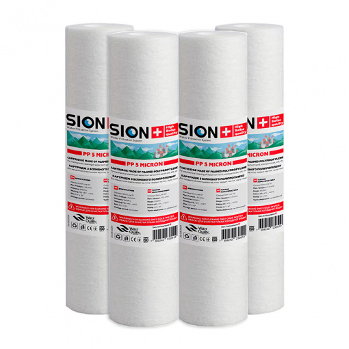 Комплект картриджів зі спіненого поліпропілену Sion 2,5”х10”, 5 мкм - 4 шт