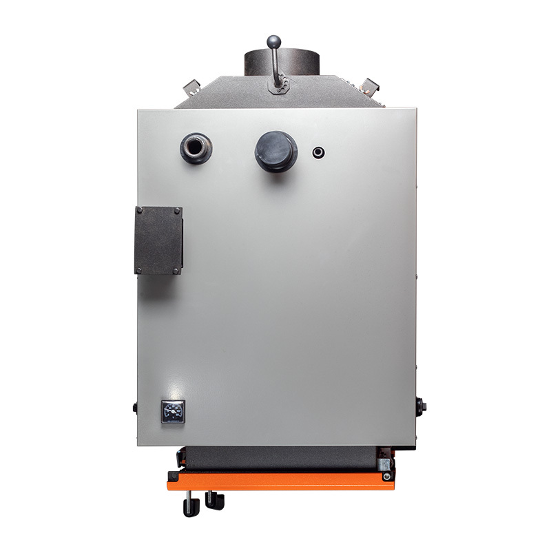 Котел працює за принципом нагріву води в системі опалення продуктами згорання твердого палива, що спалюються в топці котла.Процес горіння твердого палива відбувається на колосниковій решітці.