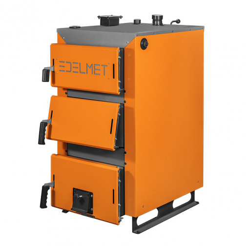 Котел моделі Edelmet виконано у формі паралелепіпеда з подвійними стінками. Основою котла є сталевий теплообмінник прямокутної форми, який складається з топки та верхнього трубного теплообмінника. Водяний об’єм котла (водяна сорочка) утворюється між зовнішніми стінками теплообмінника, топкою і газоходами. У нижній частині теплообмінника розміщена камера збору золи, яка обмежується з боків стінками теплообмінника, зверху – колосниковою решіткою, знизу – піддоном. Ззовні теплообмінник покритий шаром теплоізолюючого матеріалу і декоративною обшивкою, яка надає котлу естетичний вигляд.