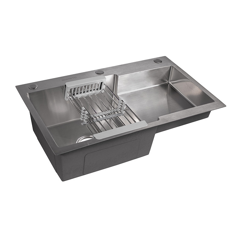 Виготовлена з міцної нержавіючої сталі AISI 304, мийка Britc HM HS7848LB стійка до корозії, подряпин і впливу високих температур. Вона легко миється та не вбирає запахи, що робить її ідеальною для щоденного використання. Спеціальний звукоізоляційний матеріал значно знижує рівень шуму навіть під час інтенсивного миття посуду, що особливо важливо для відкритих кухонь або маленьких приміщень.