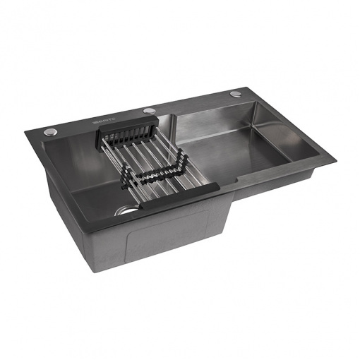 Мийка Britc HM HS7848LB комплектується сушкою для посуду, дозатором мийного засобу та сифоном з виливом