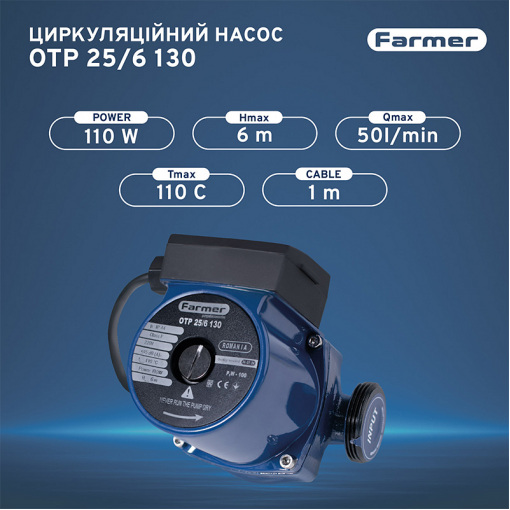 Характеристика циркуляційного насоса Farmer 25/6-130: