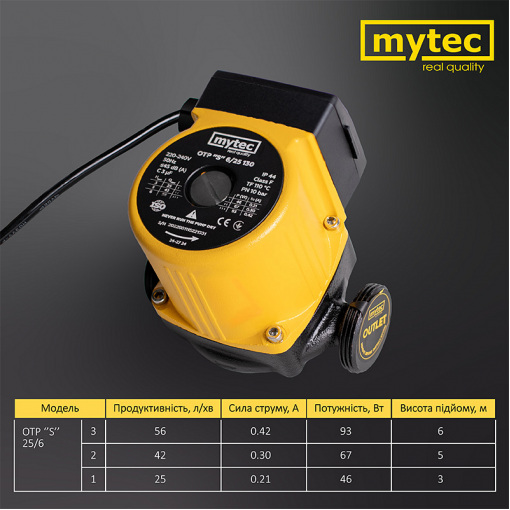 Насос циркуляційний Mytec OTP 6/25S 130 з гайками