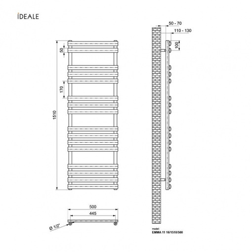 Сушарка для рушників дизайн Ideale Eliza 11 16/1510/500 антрицит