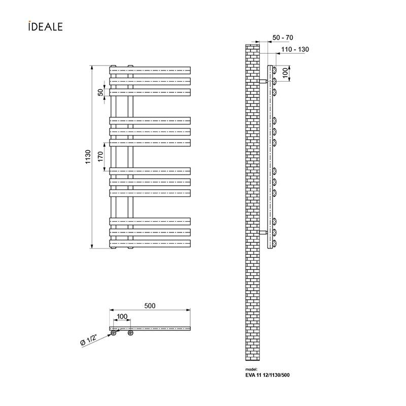 Сушарка для рушників дизайн Ideale Eva 11 12/1130/500 білий