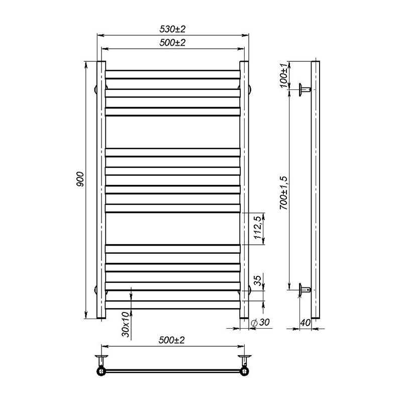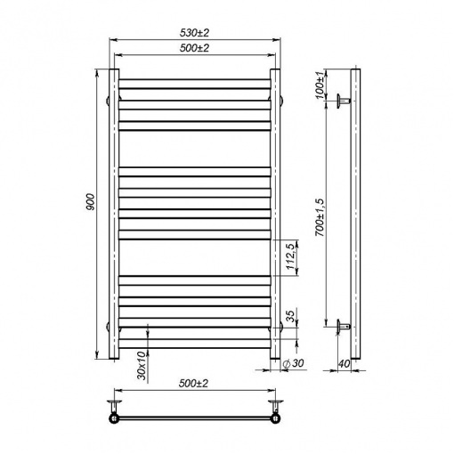 Основні характеристики рушникосушки Onlyheat Vesta 500/900/11: