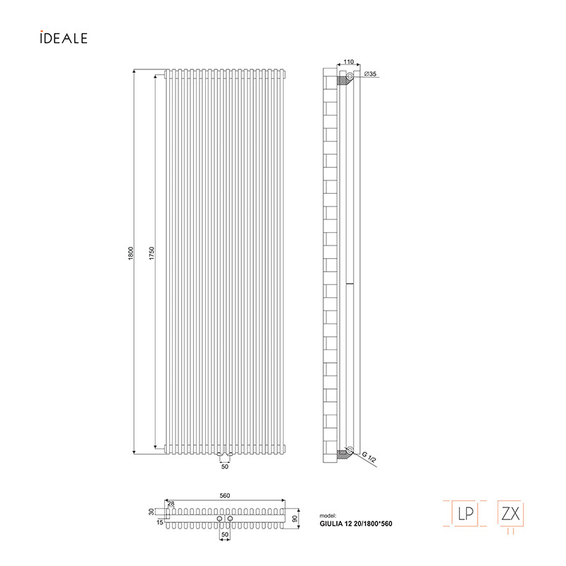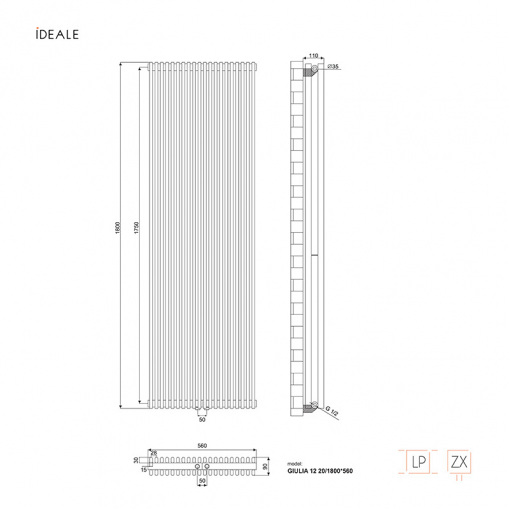 Радіатор дизайнерський Ideale Giulia 12 20/1800/560 білий
