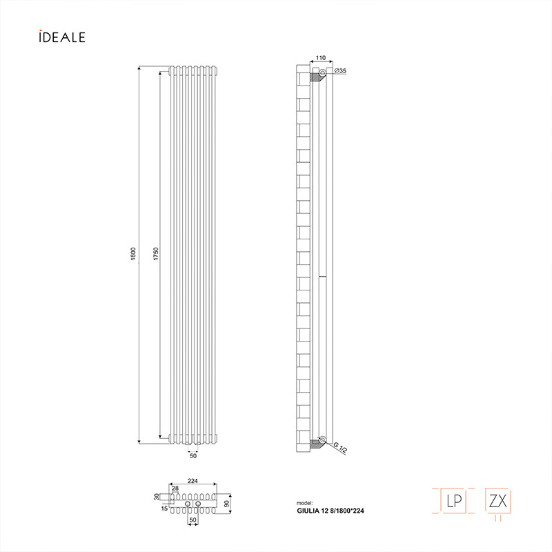Радіатор дизайнерський Ideale Giulia 12 8/1800/224 білий