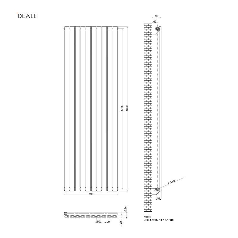 Радіатор дизайн Ideale Jolanda 11 10/1800/590 антрацит