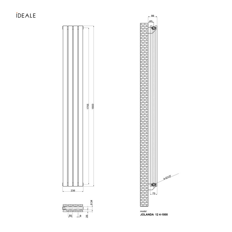 Радіатор дизайн Ideale Jolanda 12 4/1800/236 чорний