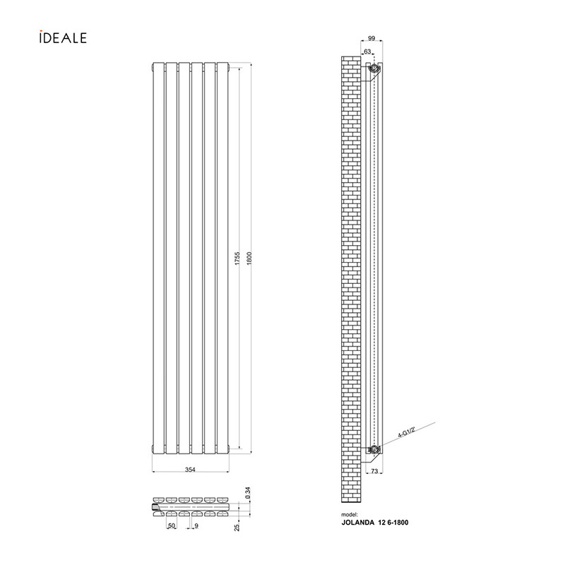 Радіатор дизайн Ideale Jolanda 12 6/1800/354 антрацит