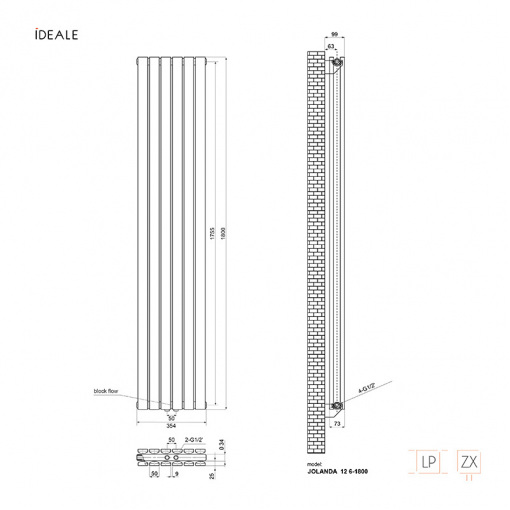 Радіатор дизайн Ideale Jolanda 12 6/1800/354 білий