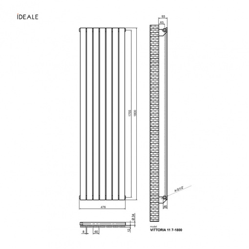 Радіатор дизайн Ideale Vittoria 11 7/1800/476 антрацит