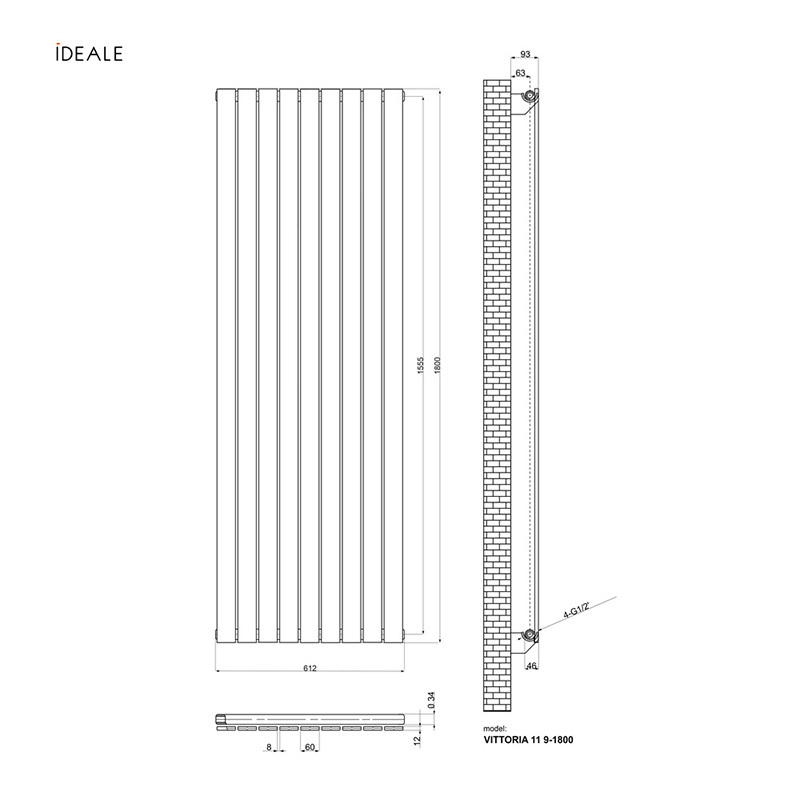 Радіатор дизайн Ideale Vittoria 11 9/1800/612 антрацит