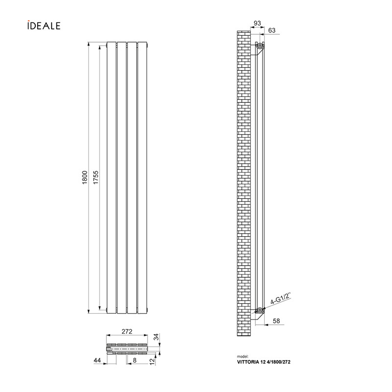 Радіатор дизайн Ideale Vittoria 12 4/1800/272 чорний