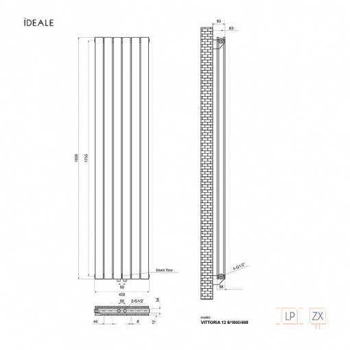 Радіатор дизайн Ideale Vittoria 12 6/1800/408 білий