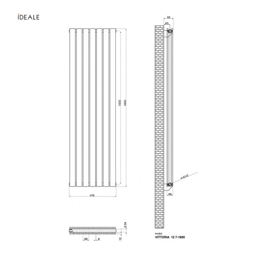 Радіатор дизайн Ideale Vittoria 12 7/1600/476 чорний