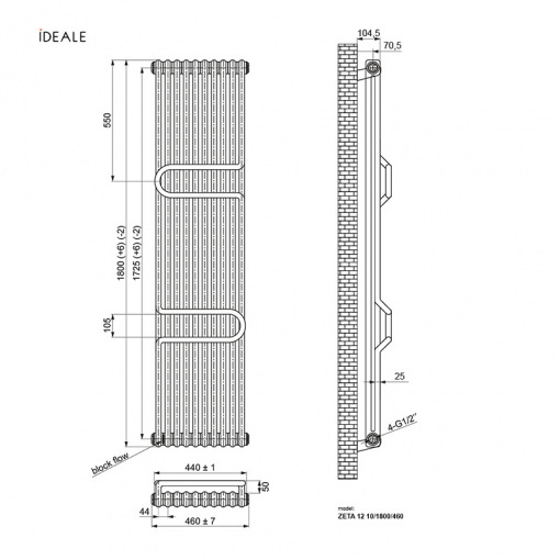 Радіатор дизайнерський Ideale Zeta 12 10/1800/460 чорний