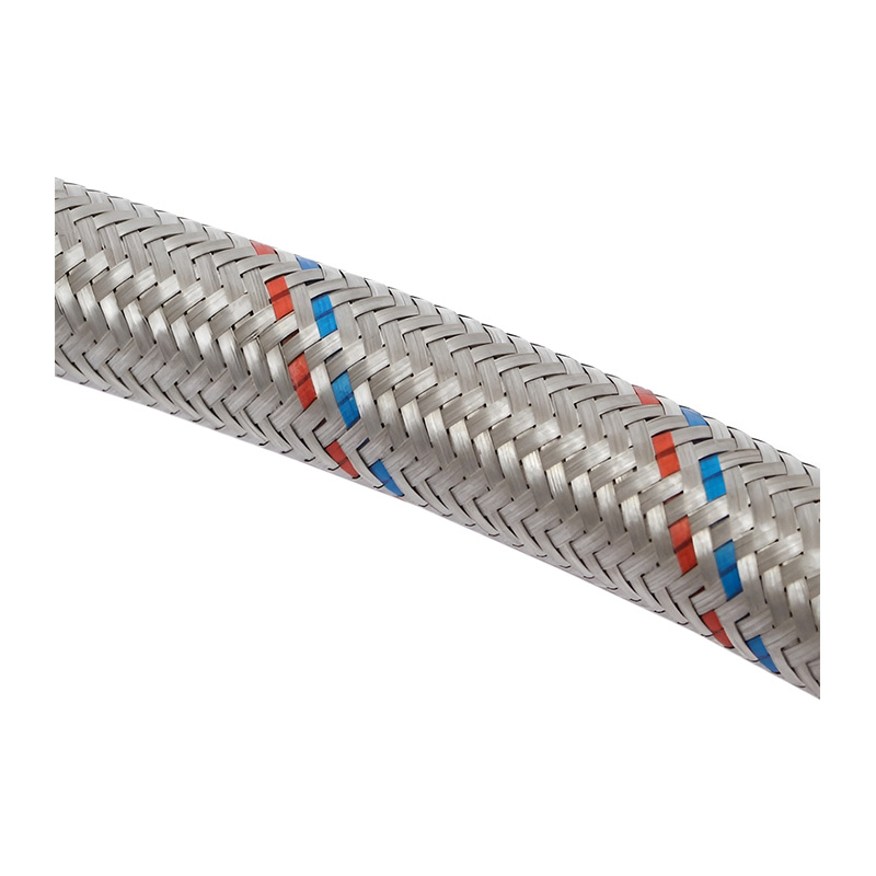 Зовнішнє армоване обплетення з нержавіючої сталі надає шлангу міцності, захищає від механічних пошкоджень і дозволяє витримувати перепади тиску, зберігаючи цілісність з'єднання навіть при тривалому навантаженні. Якісне обплетення з 7-ми ниток дозволяє підводці витримувати максимальний тиск 10 атм.