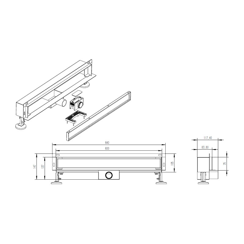 Лінійний трап пристінний Britc монтується безпосередньо вздовж стіни, утворюючи односторонній ухил і спрощуючи укладання плитки. Це рішення надає душовій зоні охайного вигляду та гармонійно вписується в сучасні інтер’єри.